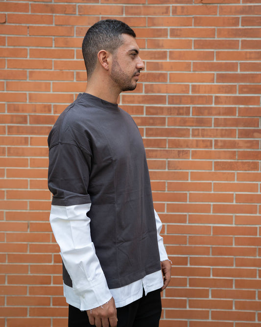 T-Shirt Grigia Maniche Camicia